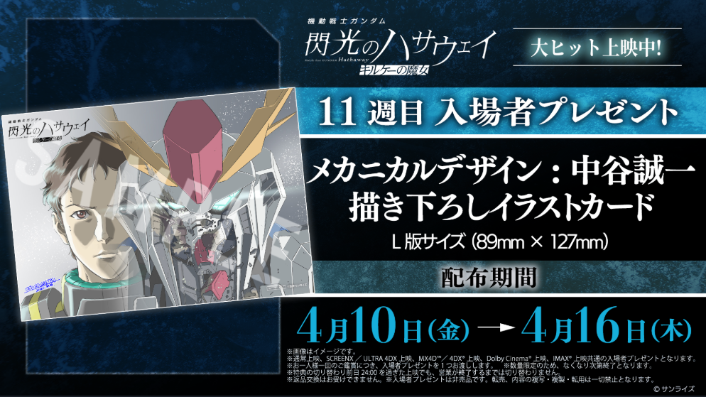 ※4月10日(金)より『機動戦士ガンダム 閃光のハサウェイ キルケ―の魔女』をご鑑賞されたお客様、お一人様につき1枚のプレゼントとなります。